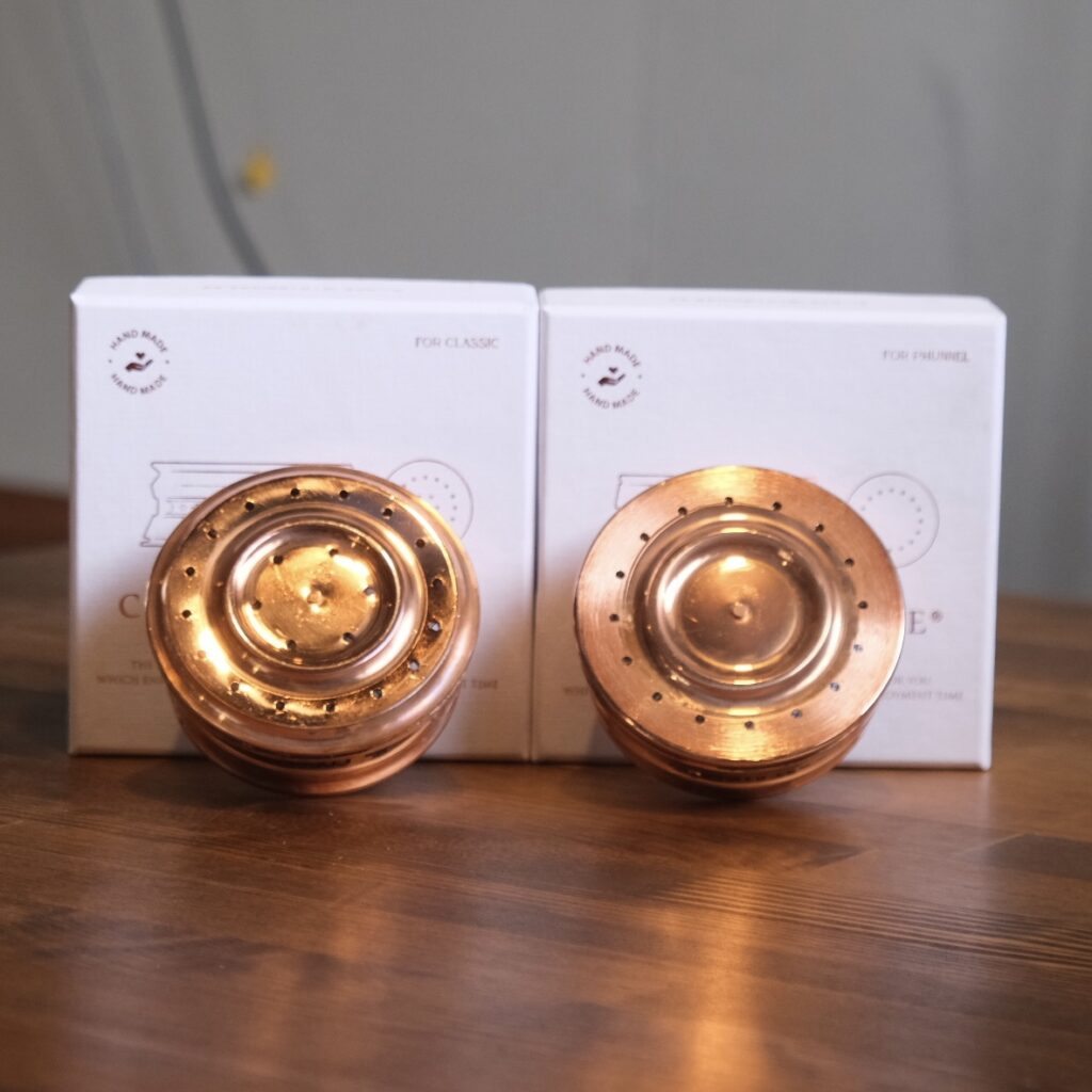 一般的なアルミやステンレス製のヒートマネジメントデバイスは熱の立ち上がりに時間がかかる場合がありますが、純銅なら短時間で適温に到達します。(蒸らしておよそ3分で吸い初めてもらうと熱伝導がスムーズという特徴にお気づき頂けます)