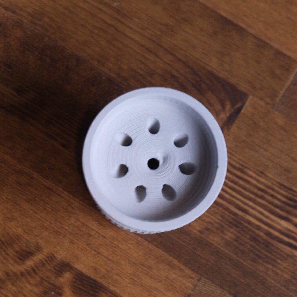 ストレートボウルは、底部に複数の穴が開いている伝統的な構造で、古くから広く使われています。上から見るとレンコンのように穴が並んでおり、その上にフレーバーを直接詰めるだけでセットできるのが特徴です。