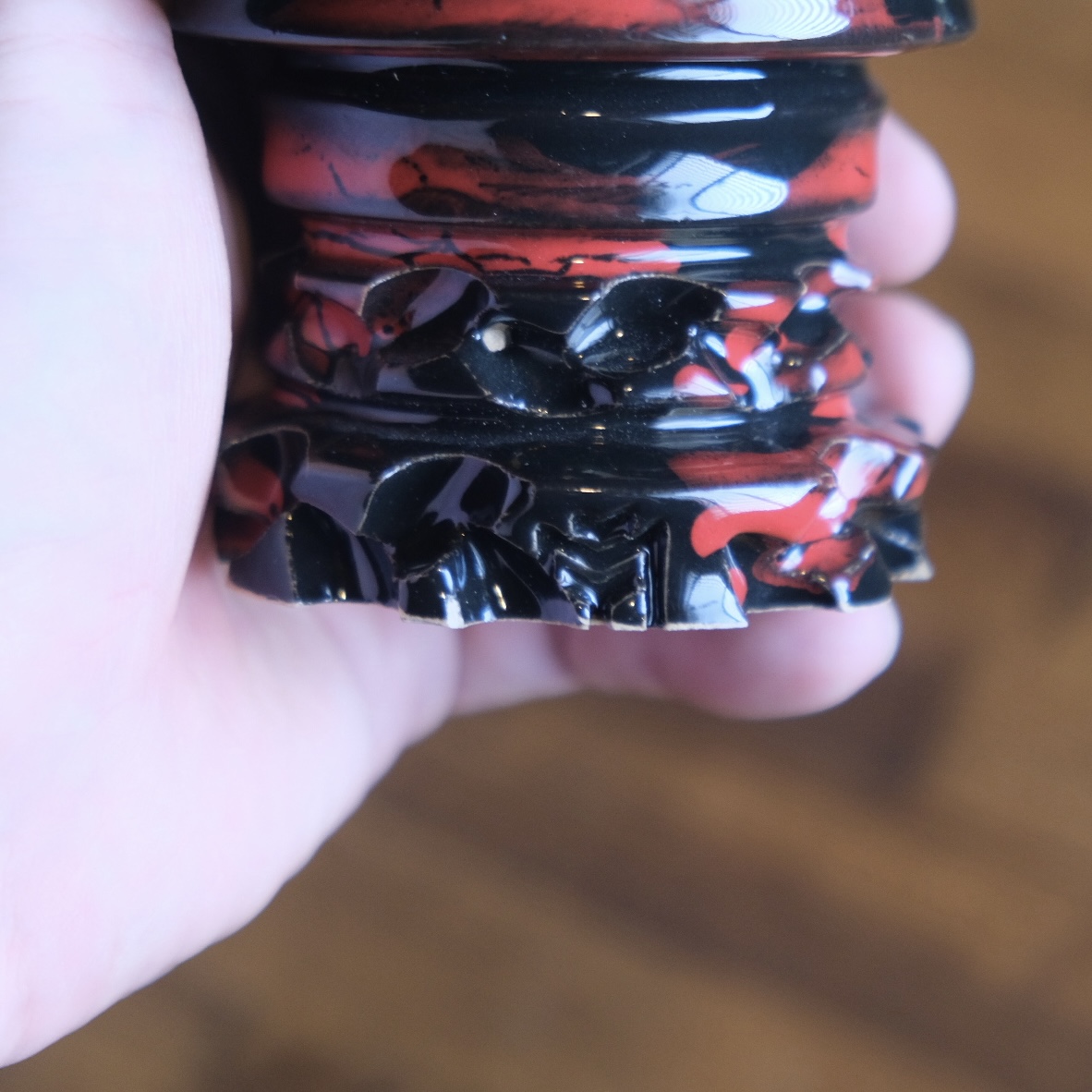卓越した職人技により施された繊細な彫刻と、力強く鮮やかなカラーコントラストが、