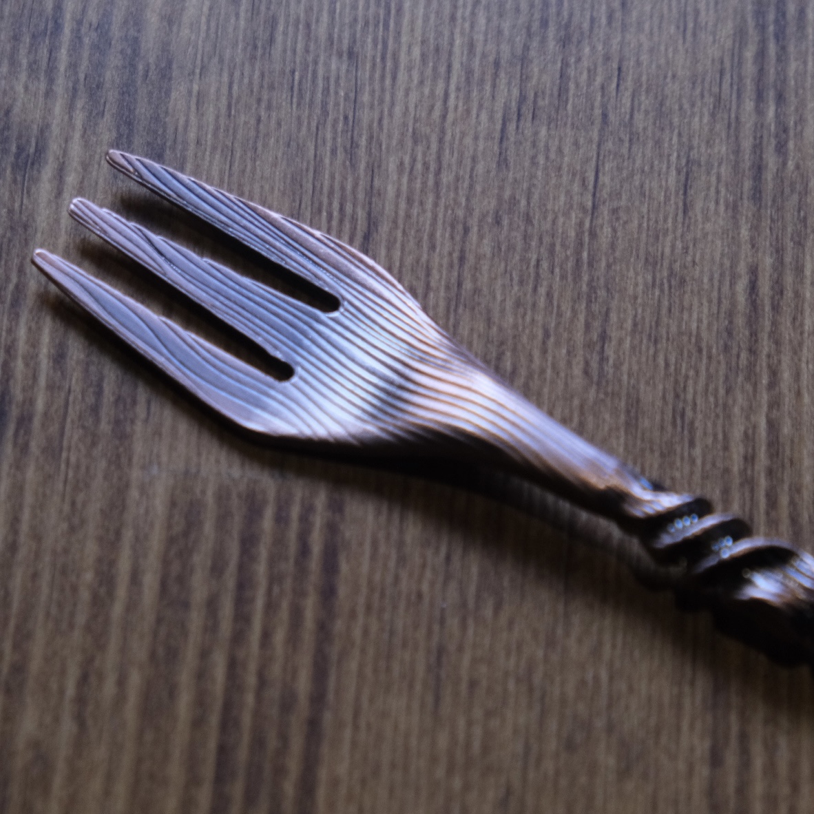 持ち手に施された彫刻はデザイン性と、持った際に滑りにくい実用性も兼ね備えてます!